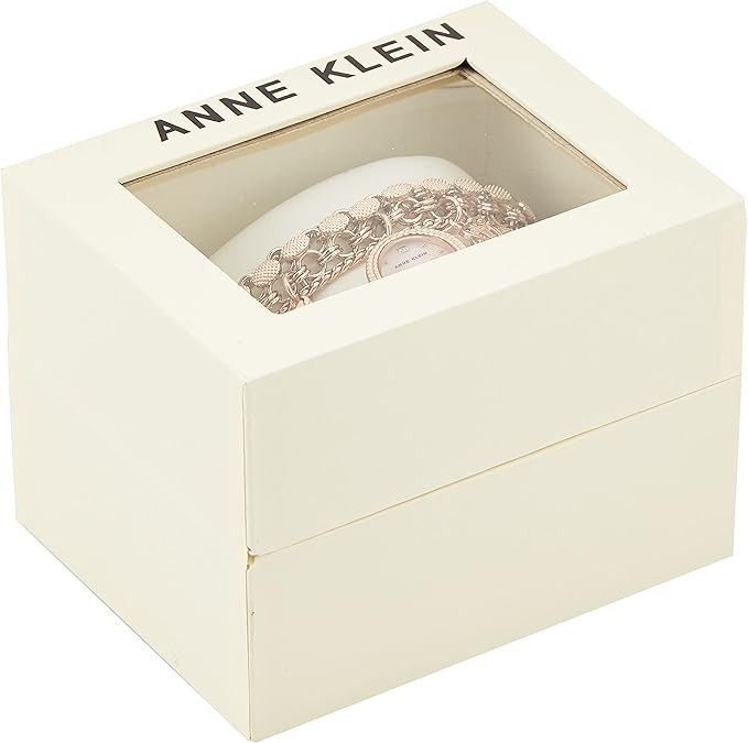Slightly domed mineral crystal lens; rose gold-tone mother-of-pearl dial with matching hands and markers; rose gold-tone chain bracelet with jewelry clasp and extender