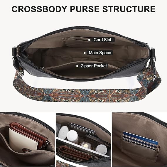 Crossbody Purse Structure: The crossbody purse is equipped with 5 pockets, including a front zipper pocket, a main compartment and an inner zipper pocket as well as a slip pocket, which can easily store your daily necessities, such as mobile phone, wallet, lipstick, perfume, passport, cosmetics, sunglasses, keys, etc., is a necessary medium crossbody bag for your daily travel