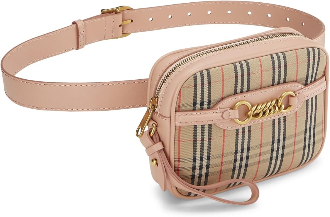 BURBERRY Pre-Loved Pink Haymarket 1983 Check Canvas Belt Bag, Pink