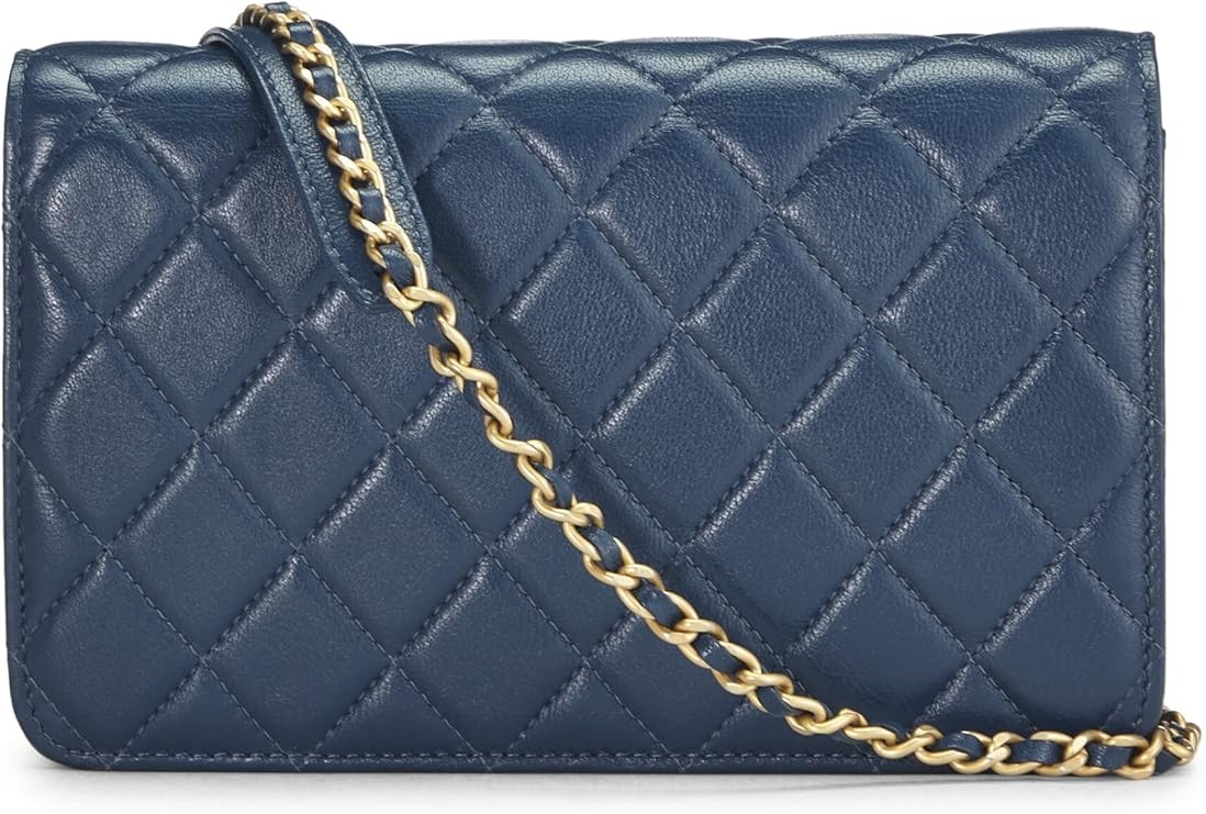 CHANEL Pre-Loved Blue Quilted Lambskin Infinity Wallet on Chain (WOC), Blue