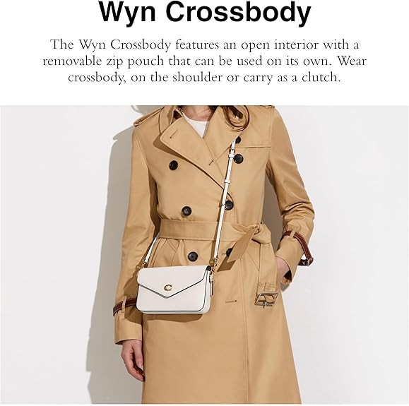 Editors Notes: The Wyn crossbody invites organization with an elegant envelope design. Finished with an exterior slip pocket for easy access to essentials, it features an open interior with a removable zip pouch that can be used on its own