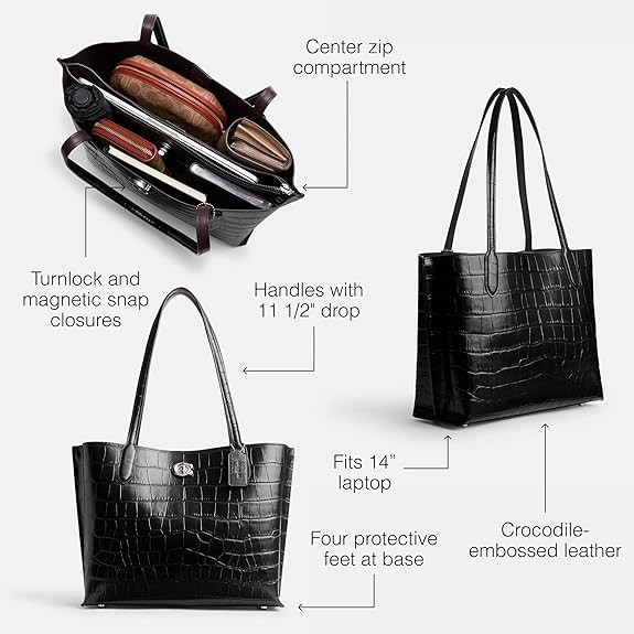 Crocodile Embossed Leather: The best kind of mix up. This rich, mixed leather Coach tote combines sophisticated smooth leather with our crocodile embossed leather