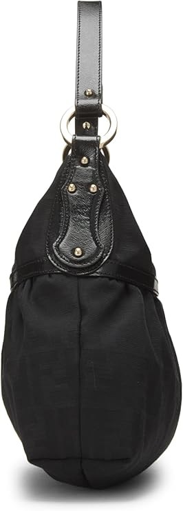 FENDI Pre-Loved Black Zucca Canvas Shoulder Bag Medium, Black