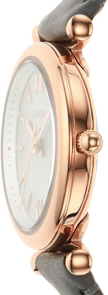 Watch Band: Gray, genuine leather band with a secure adjustable buckle closure for a customized fit; interchangeable with all 12mm Fossil straps.
