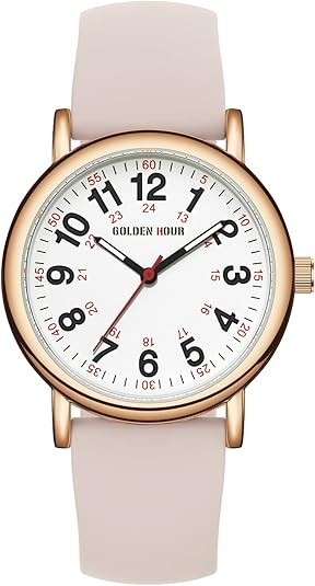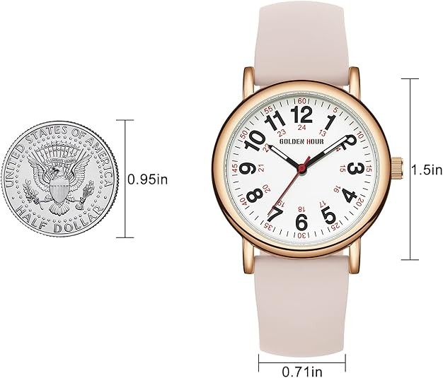 GOLDEN HOUR Waterproof Nurse Watch for Medical Professionals, Students Women Men - Military Time Luminouse Easy Read Dial, 24 Hour with Second Hand, Colorful Silicone Band