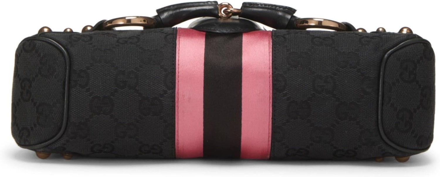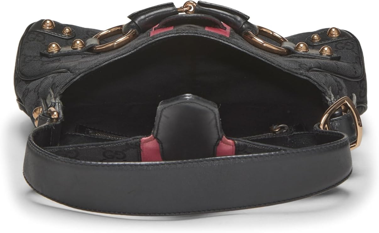 Gucci Pre-Loved Black GG Canvas Web Horsebit Shoulder Bag, Black