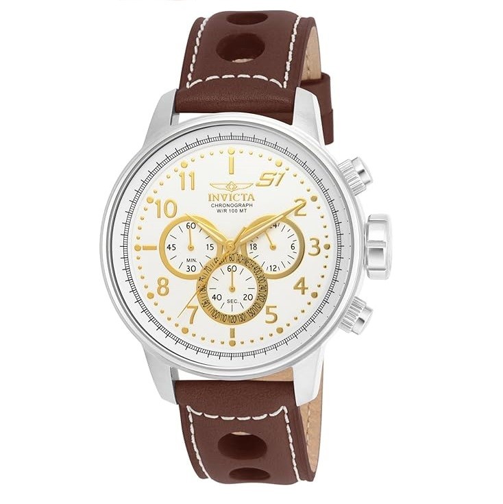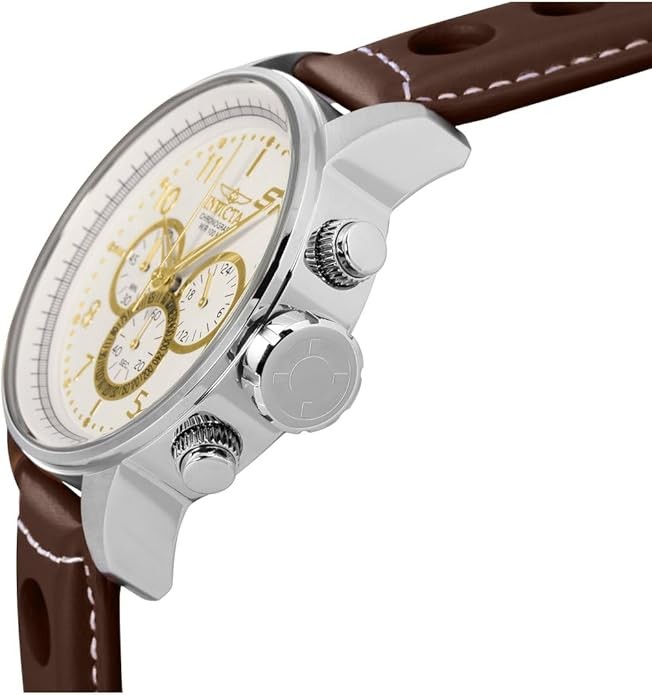 Stainless steel case 48mm diameter x 13.5mm thick; Gold and Antique White dial