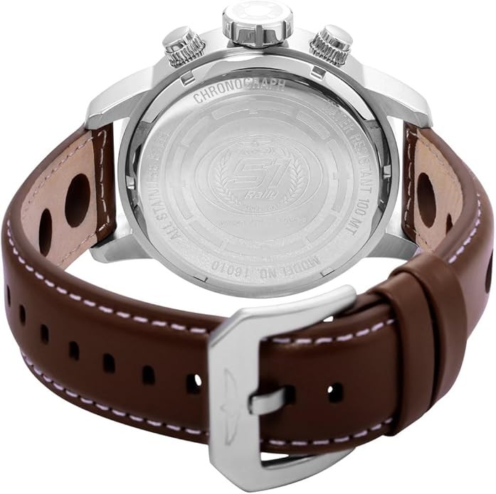 Mineral crystal; Push/pull crown; Stationary stainless steel bezel; Functional Subdials: 60min, 60sec, 24hr; 100 meter water resistant: Suitable for recreational surfing, swimming, snorkeling, sailing and water sports. Not suitable for diving.