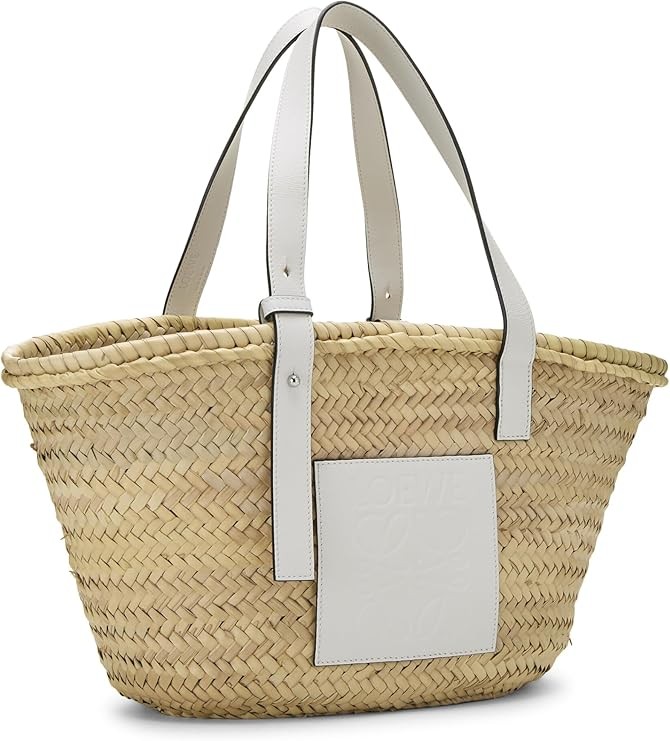 LOEWE Pre-Loved White Raffia Basket Bag Medium, White