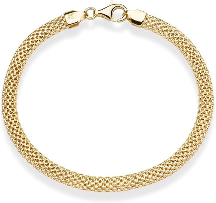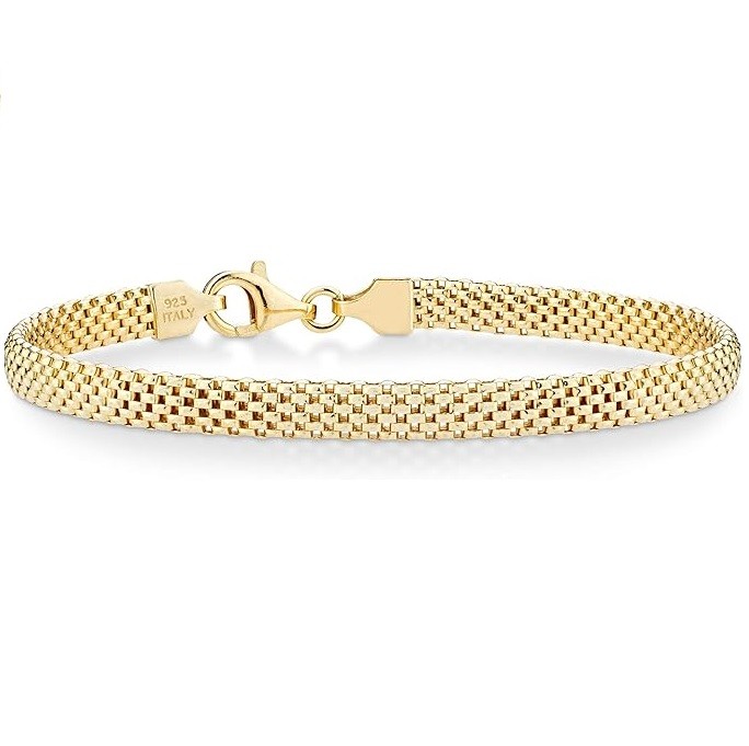 Classic Italian Style - Add a dash of glam to your everyday look with this 18K gold over sterling silver 5mm Mesh bracelet. Simple interlocking links create a flexible movement and shiny finish for a modern and polished look. Domed in form, it is not too chunky, with just the right volume for a cool feminine silhouette. It's the perfect bracelet for daily wear, whether with casual jeans and t-shirt or a dressy attire. For a trendy fashion statement, wear stacked and layered with other pieces.