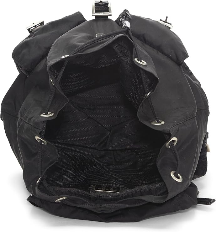 Prada Pre-Loved Black Nylon Drawstring Backpack, Black