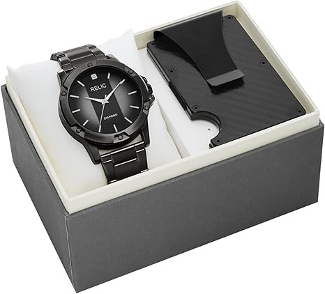Editor's Notes: All your necessities are covered with this 46mm all gunmetal Rylan watch gift set which features a genuine Diamond on the watch dial, a metal bracelet and a black metal cardholder.