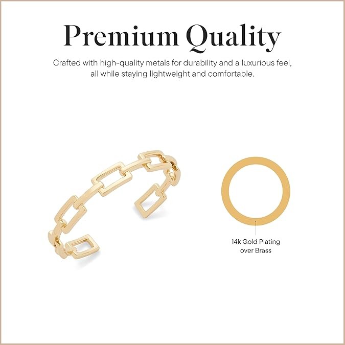 14k Gold Plated: This 2.5" adjustable gold bracelet for women is made of high-polish 14k gold plating over brass