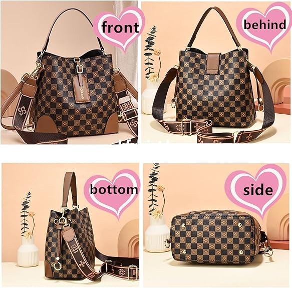 [Fashion Design]: Fashionable printed plaid retro style, Popular bucket purse style.Small hobo handbag purse for women.