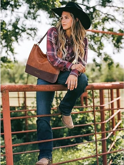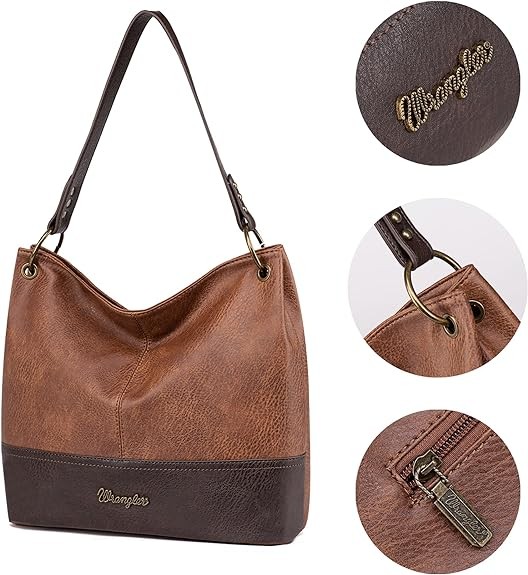 Wrangler Hobo Bags for Women Vegan Leather Top Handle Shoulder Purses and Handbags