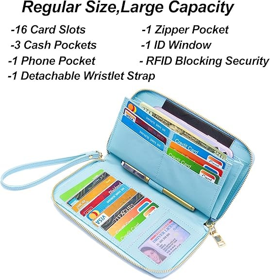 • POCKETS:Purses-1 main zipper compartment with 1 inner zipper pocket and 2 slot pockets,Can put 14-inch laptop.Wallet-16 Card slots,1 ID window,2 full-length compartments,1 pen loop and a large zippered pocket,This wallet easily holds 40 pieces of paper money, 16 cards and an iPhone 14 pro and passport, pen, checkbook.