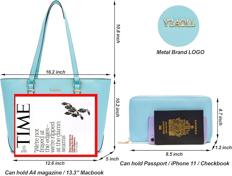 YZAOLL Purses for Women Faux Leather Medium Large Tote Satchel Shoulder Purse Handbag Wallet set